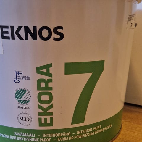 Maalipurkki avattu 5.3. Käytetty n. puolet 2,7l purkista. Sävytys Teknoksen Happines.