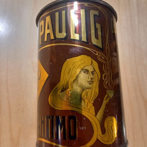 Vanha peltipurkki, kahvipurkki, kotimainen Kenia Oy:n Asessorin sekoitus 500 g. Korkeus 16 cm leveys 11,5 cm. 8-kulmainen purkki, pyöreä kansi. Käytössä tulleita jälkiä yläreunassa ja pohjassa ulkopuolella muutama ruosteläiskä. Sisältä siisti. Postitus tai nouto.
