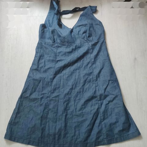 Kaunis valko/sininen, raidallinen mekko. Kokomerkintä 40. Sivuilla narut. Takana joustoresori. Hyväkuntoinen. Olkanauhoissa säädöt.