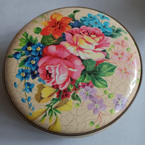Vanha kermanvärinen kahvipurkki, kahvin tuoksu tallella. Tulppaaneja. Korkeus 20 cm. Halkaisija 11,5 cm. Muovikansi tiivis, patenttilukitus. Postitus tai nouto.