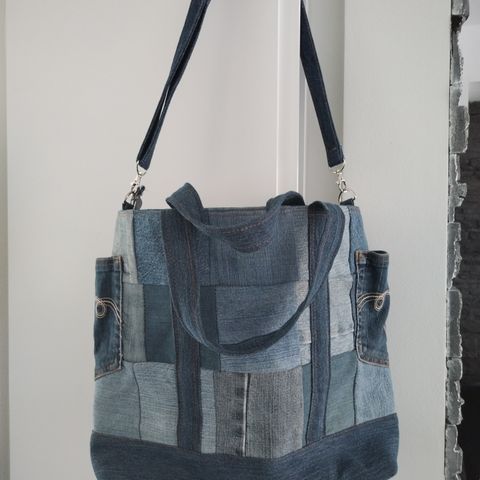 Trendikäs arki laukku. Materiaali denim&polyuretaani.