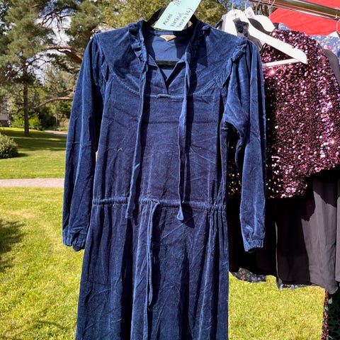 Kaunis maximittainen samettimekko, joustaa. Kokomerkintä l, pienempää. Pituus 140cm ja kai kai mitta venyttämättä 45cm. Oikein siistissä kunnossa