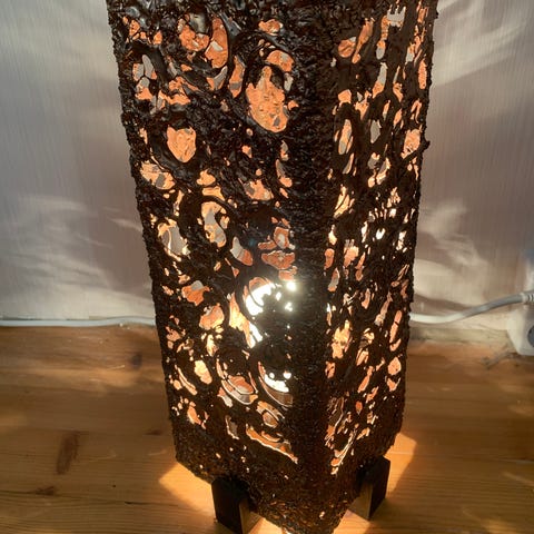 Korkeus 35cm, leveys 26cm. Suunnittelija Aimo Tukiainen. Brutalistisen tyylisuunnan klassikko 60-70 luvulta ja painava on.