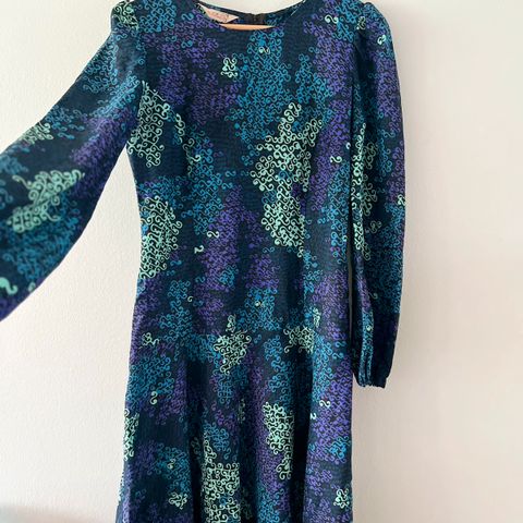 Sataneule Oy: n hihaton liivimekko, koko L. Mekossa on kirjava ruutukuviointi punaisen ja mustan sävyissä. Etupuolella on kaksi taskua. Valmistettu Suomessa.