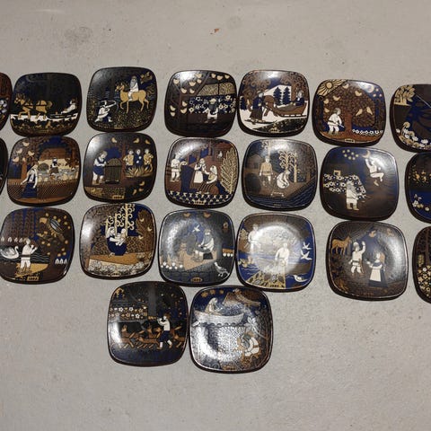 Seinällä olleita lautasia , suurin osa Arabiaa .