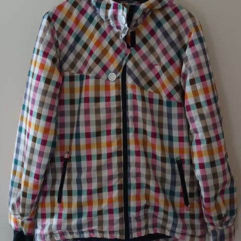 Takissa on mukavan väljä, kiristysnauhoin säädettävä ja irrotettava huppu sekä sopivasti taskuja (etutaskut & povari)
