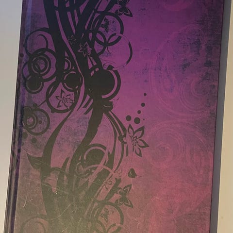 Käyttämätön muistikirja, mutta säilytyksessä tullut pieniä käytön jälkiä, joista kuvat.