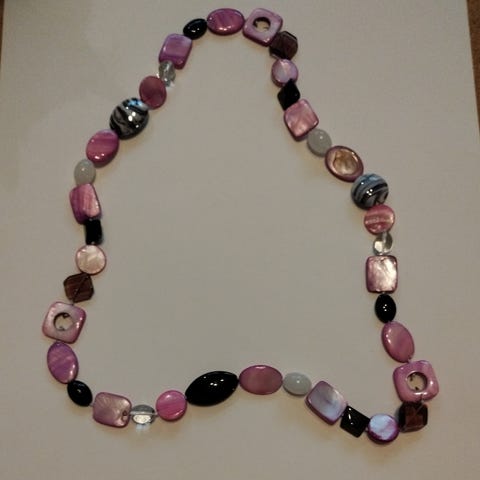 Kaulakoru ja riippuvat klipsikorvakorut venetsialaista lasia. Lahjarasiassa.