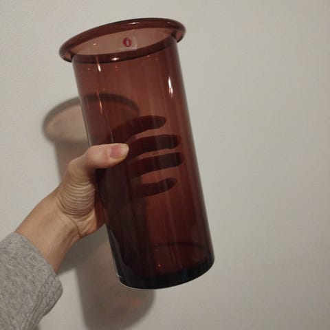 Uudenveroinen, tyylikäs, siniharmaa Juno-maljakko. Iittalan mallistoa, suunnittelijana Markku Salo.