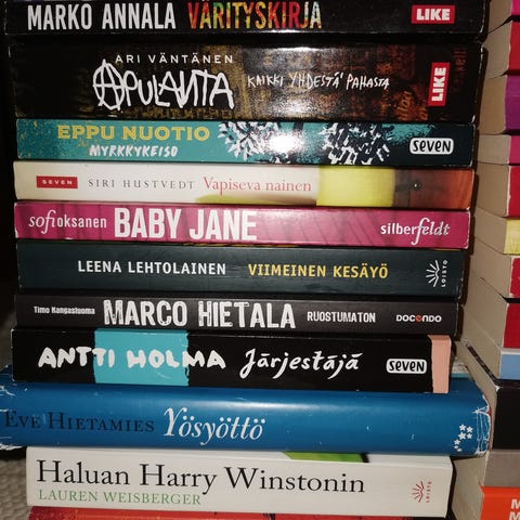 19 kpl pokkari kirjoja. Kuvistä näkee nimet.