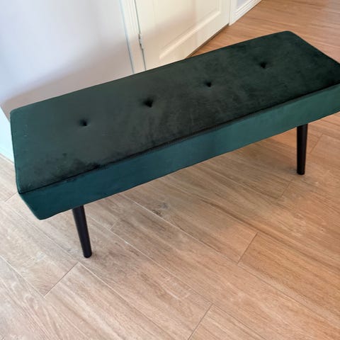 Kuvien mukainen penkki. Mitat; leveys 187, syvyys 67 ja korkeus 45. Kunto uutta vastaava.