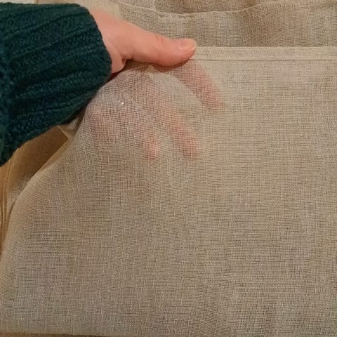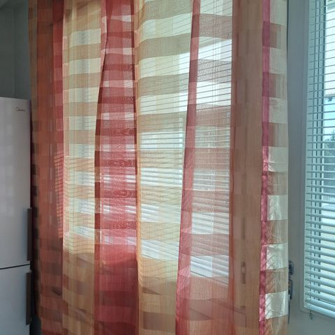 Kesäiset vaaleankeltaiset läpikuultavat verhot.