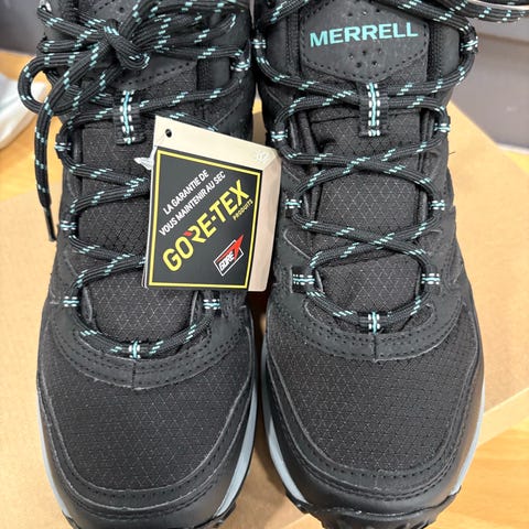 Muutaman kerran pidetyt Merrell Accentor Sport GoreTex retkeilykengät. Kengät ovat valitettavasti hiukan reilut eli ovat sen takia jääneet pitämättä.