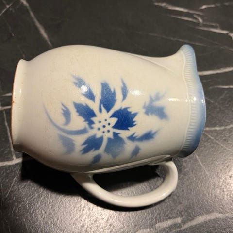 Kaunis kukkakuvioinen Arabian kaadin. Maitokannu ehjä. Korkeus 15 cm, halkaisija 10 cm.
