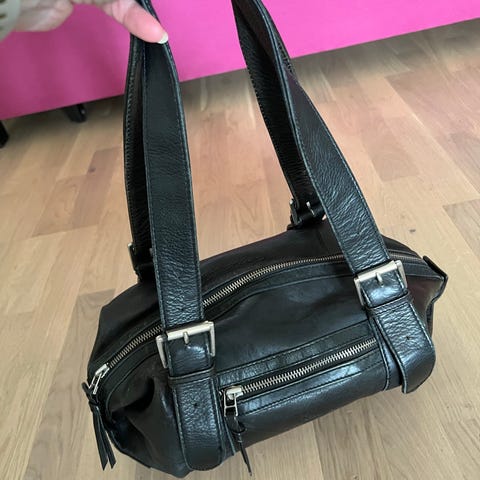 Nahkalompakko . Tiger of Sweden. Saa suljettua kokonaan vetoketjulla . Sisällä tilaa korteille ja muutakin mahtuu. Leveys n.20cm ja korkeus 10cm.