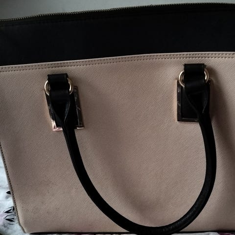 Itse laukku hyväkuntoinen, paitsi vetoketjun alapäässä oleva kiiltävä pinta murtunut ja kulunut. Olkahihnassa kulumaa, mutta hihna vaihdettavissa. Sisältä siisti. Ei sotkettu esim meikeillä eikä haise.