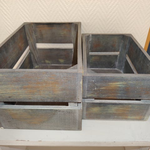 Ratia puiset säilytyslaatikot. Maalattu valkoiseksi. Toisessa edessä halkeama, katso kuva. Koko kxlxs noin 12 cmx12,5cmx24cm