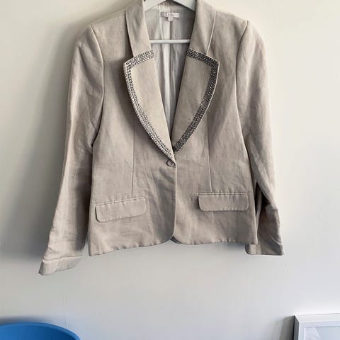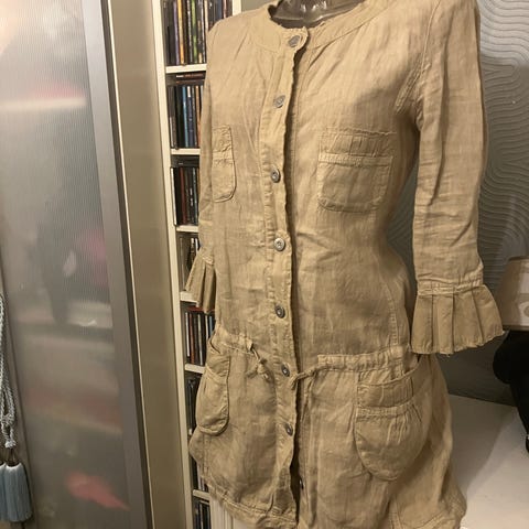 Upea mustavalkokuvioinen kääntötakki kevän ja kesän juhliin. Ihanan viileä koska pellavaa. Koko L. Molemmilla kääntöpuolilla taskut ja napit
