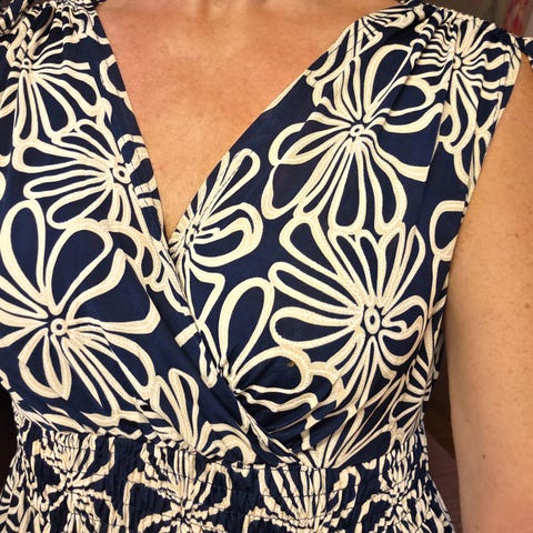 Kuvan mukainen sininen kukkamekko, koko 38.