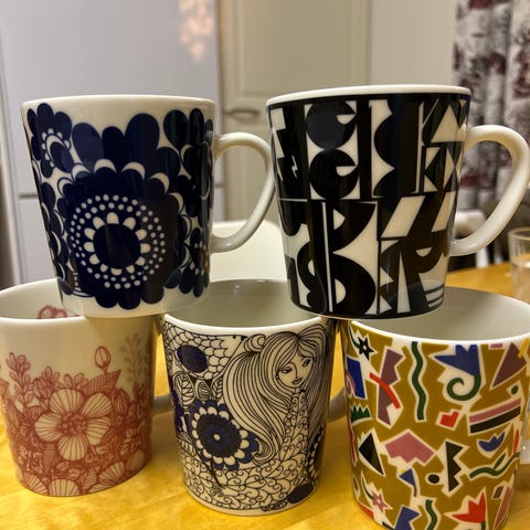 Myydään kaksi kappaletta Arabian Piplia-mukeja vuodelta 2004.