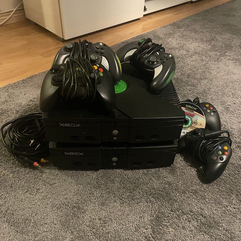 Harvinainen, hyväkuntoinen Xbox Transluscent Green konsoli piuhoilla sekä konsoliin kuuluvalla hyväkuntoisella läpinäkyvällä ohjaimella. Aikoinaan valmistettu 5000kpl erä, josta toimivia yksilöitä näkee yhä harvemmin ja harvemmin (ja arvot tasaisesti vain nousseet). Mukana myös alkuperäinen Scart-liitin AV-piuhojen päähän.