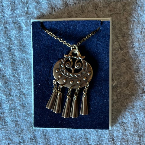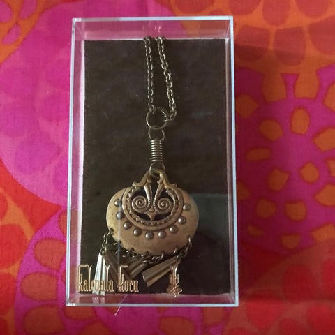 Koru on ollut käytössä vain kerran ja riipus on uudenveroisessa kunnossa! Vain ketju on ajan saatossa hieman tummunut.