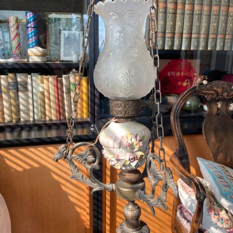 Vanha kattolamppu, iästä en osaa sanoa mutta toimiva on. On jäänyt tarpeettomaksi, toimiva on.