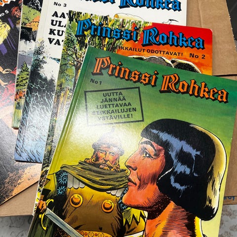 Prinssi Rohkea albumit no:1 ,4,5,6,7,8,9, 70luvun sarjakuvaa myydään mieluusti kaikki kerralla hintaan 65e.Posti 8e tai nouto