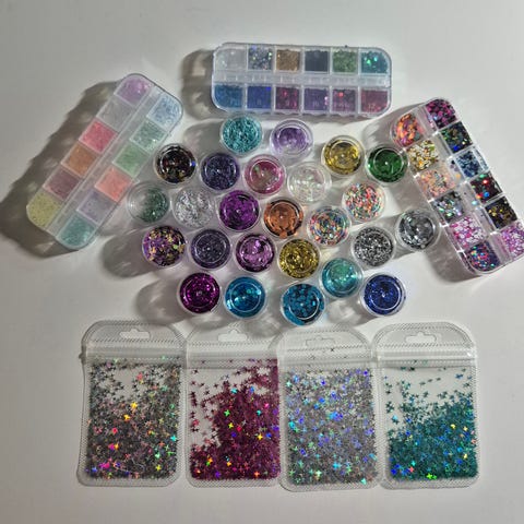 Myydään ihania ruusu kynsikoristeita 9 eri väriä. Huom purkit eivät kuulu kauppaan, pakkaan koristeet minigrip pussiin postitusta varten.