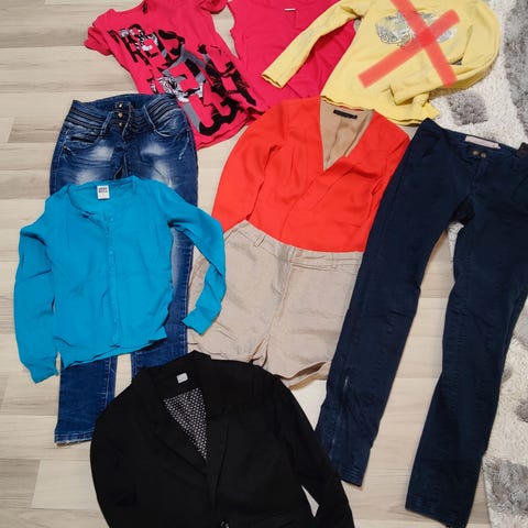 Siisti ja ehjä vaatet. Koko S, paitsi housut. Housut S-L joustava niin juhin