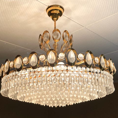 Moderni kristallikattokruunu hopeanvärinen. Tyylikäs valaisin, joka sopii erinomaisesti olohuoneeseen tai ruokailutilaan. Kattokruunu on valmistettu laadukkaista materiaaleista ja siinä on useita kristallielementtejä, jotka luovat kauniin valon ja varjojen leikin huoneeseen. Koko ja muoto tekevät siitä näyttävän sisustuselementin. uutena yli 1400€ Saa tarjota !