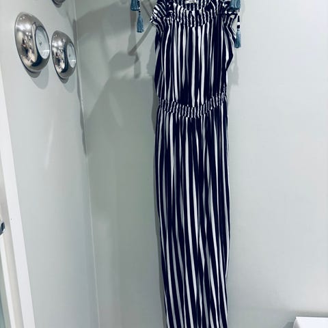 Esmara. Musta-valkoinen. Kokomerkintä 36, ollut 34/XS kokoisella. Mallinukke on 36/S kokoa (vyötärö 67cm/rinta 87cm) ja kertoo siis mittasuhteet, en mittaile erikseen. Kesällä vilpoisaa viskoosia, kuminauhavyötärö/hihansuut. Vähän käytetty siisti. Ei sovituksia, ei toridiiliä, en tingi. Nouto tarkka aika etukäteen sovitusti ma-pe kl.10-16 Hki88 tai postitse pakettina.