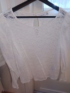 Hyväkuntoinen Vilan valkoinen pitsipusero. Vähällä käytöllä ollut. Koko L. Kainalo-kainalo mitta 51 edestä mitattuna, olka -helma 61, vyötärö 50cm. Postitus onnistuu. Ostajalle postikulut 5,90.