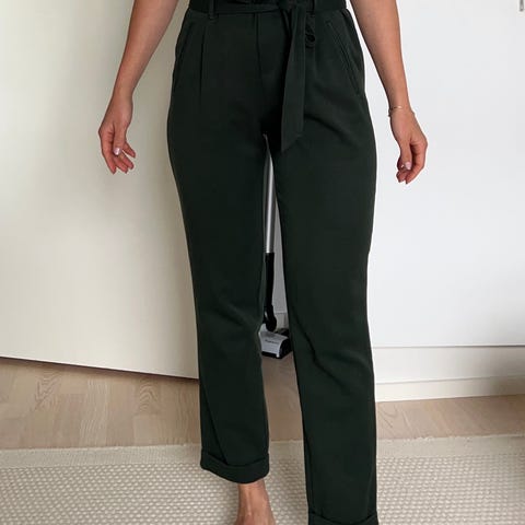 Uudenveroiset Zara merkkiset tummansiniset ihanasta laskeutuvat housut. Kokomerkintä XS mutta varmaankin menee myös S tai 34-36 kokoa käyttävälle. Ylhäällä vyötäröllä kiristysnauha ja sivuilla taskut. Takana ylhäällä 1 kpl piilotasku.