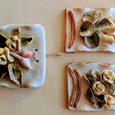Pieni savitaulu. Kotimaista tuotantoa. Takana on metallilenkki ripustamista varten.
