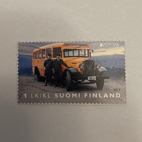 Myydään kuvien mukaisessa kunnossa oleva Postimerkki Postibussi Suomi 30mk Finland