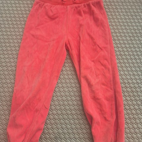 Myydään viininpunaiset velour-housut koko 104 cm. Polvet ja peppu ok.