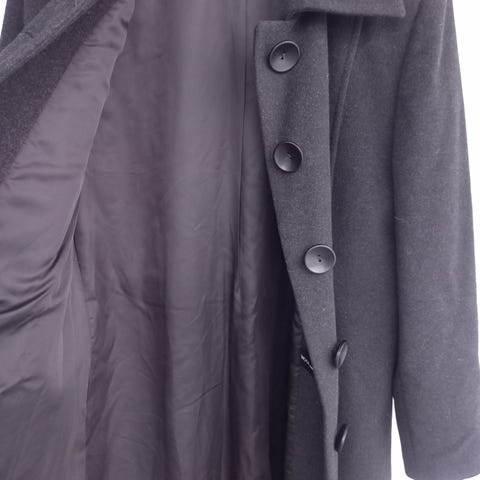 Ruskea pitkä villakangastakki. Merkki Erich Fend. Villaa ja kashmiria. Pieni repeämä vuoressa. Koko 38/M.