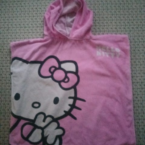 Joulupakettiin alkuperäinen Hello Kitty punainen sydämillä Sanrio kylpypyyhe aivan ehjä mutta käytetty, lenksu pyyhekoukulle, puuvillaa 100 %. Koko 134 cm * 72 cm.