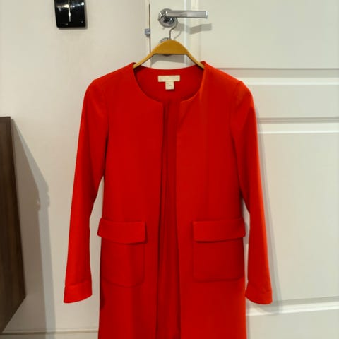 H&M merkkinen tyylikäs bleiseri tai takki. Kokomerkintä 32, mutta menee hyvin 34 tai XS-S kokoa käyttäville. Virtaviivainen ja puhdas leikkaus. Edessä sivuilla taskut. Hihoissa kivat ja kätevät oienet ryoytykset eli hihansuut pysyy kivasti ylhäällä. Kivasti laskeutuva kangas.