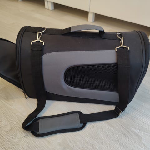 Ehyt kankainen kuljetuskoppa. Vetoketjut päällä ja päässä ehyet. Pituus 46cm, leveys 25cm ja korkeus n.30cm
