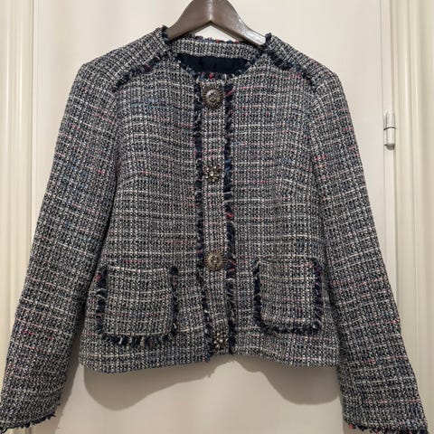 Zara Woman sininen naisten takki, koko XL. Takissa on kaksirivinen napitus ja koristeelliset napit hihansuissa. Materiaali pääosin villaa. Jäänyt vähälle käytölle.