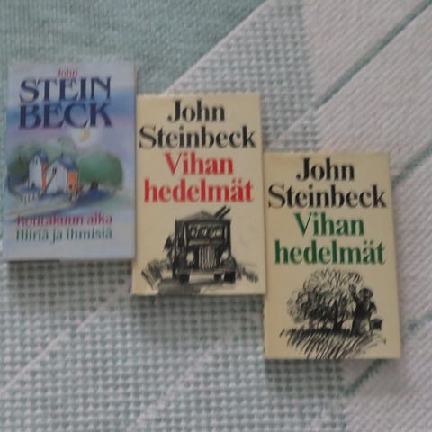 John Steinbeck Routakuun aika & Hiiriä ja ihmisiä, kovakantinen paperikansilla, SSKK, s. 251.Paperikansissa pientä repeämää, sivuilla iän tuomaa kellastumista