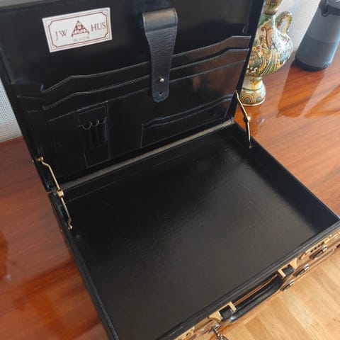 Myyn Guccin dokumenttikansion 80-luvulta. 2020-luvulla tämä sopii läppäri-sleeveksi. En usko että tätä on ikinä käytetty, edellinen omistaja sanoi että tämä on viettänyt vuosikymmenet hyllyssä. Kunto ei vastaa täysin uutta, en tämän vuoksi voi tätä uutena myydä. Kuvat kannattaa katsoa läpi, pieniä jälkiä löytyy. Itse en ole tätä ikinä käyttänyt. Myydään kuvissa näkyvässä kunnossa.