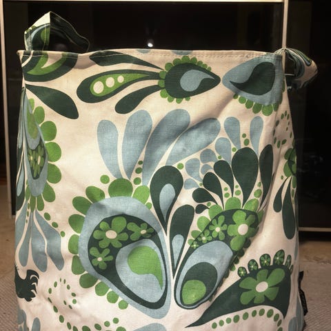 Hauska petrolin värinen Finlaysonin lelukori! 30cmx30cm. Materiaali: 100 % puuvilla, pvc-päällyste. Vain haku ja maksu Mobile Pay.