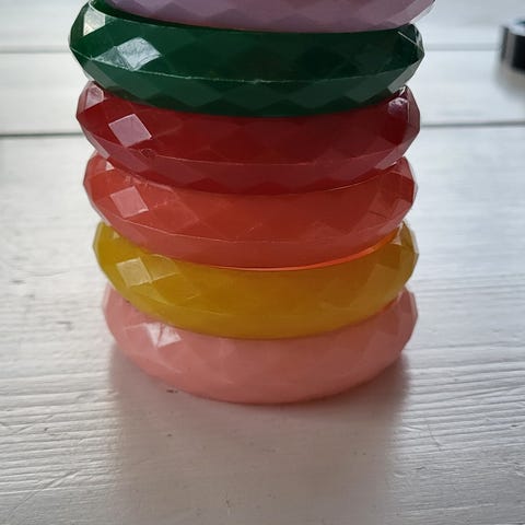 3 kpl 80- luvun rannerenkaat muovia ja metallia 6+ postitus 6