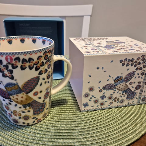 Iittala Taika hyväkuntoiset ja ehjät mukit, ei tummentumia tai jälkiä lusikoista. Neljä kappaletta. Väri tummansininen.