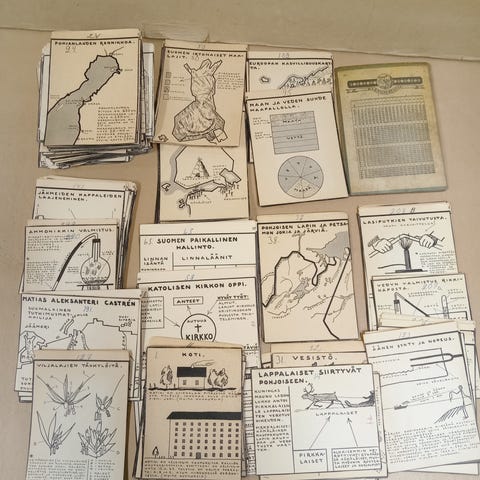 Alavuden keskikoulun vanhoja opetuskortteja reilu 20 kpl
