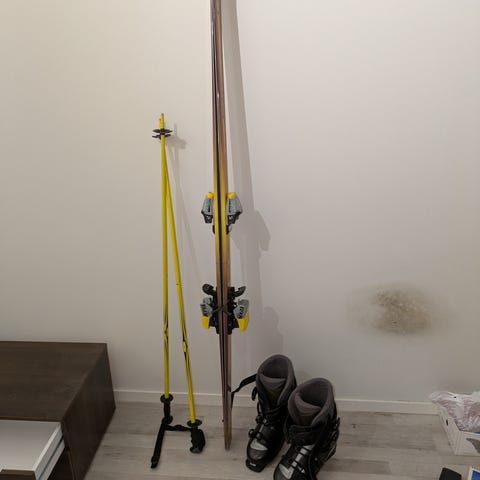 Myyntiin muutaman kerran tytöllä käytössä ollut laskettelusetti. Koko setti on uutena ostettu. Kaikki välineet ovat ehjiä ja vähän kuluneita. Setti sisältää siis sukset, sauvat ja monot.