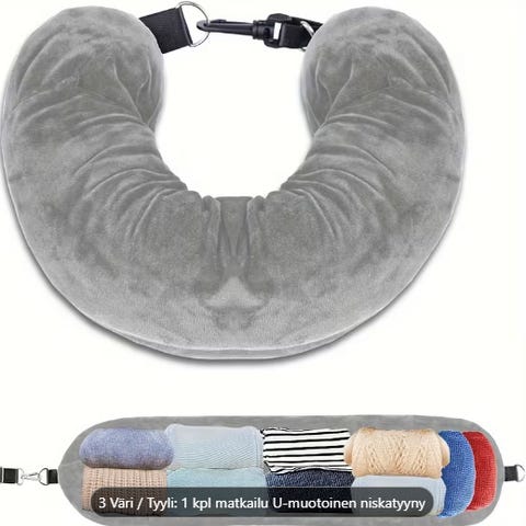Kuvan käyttämättömiä matkatyynyjä 3 kpl. Yhden hinta 7 €. Postimaksu kahdelle tyynylle 10 €.